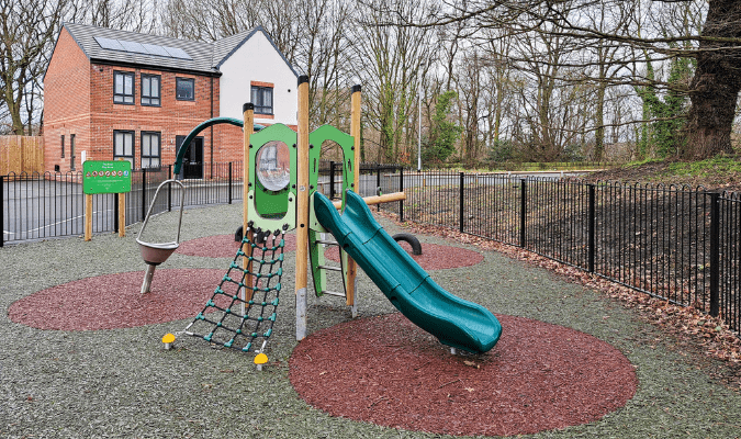 Following five years of planning and collaboration, the completed play area now provides a valuable community space for families within the development. The playground equipment has been designed to support a range of ages and play experiences, encouraging active use by children and families. The mature tree canopy also provides natural shade during the summer months, helping to create a welcoming space for outdoor play all year round.