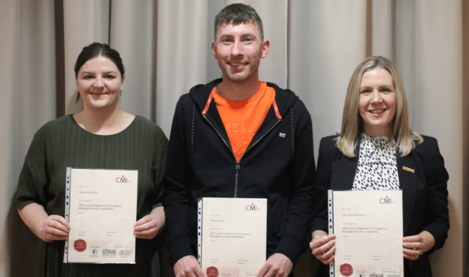 Karla Thomas, our Marketing Manager, Matthew Luxton, our 3D Design Team Leader, and Matthew Harby, our Playground Design Manager, have all completed their Level 5 Business and Leadership Management course.