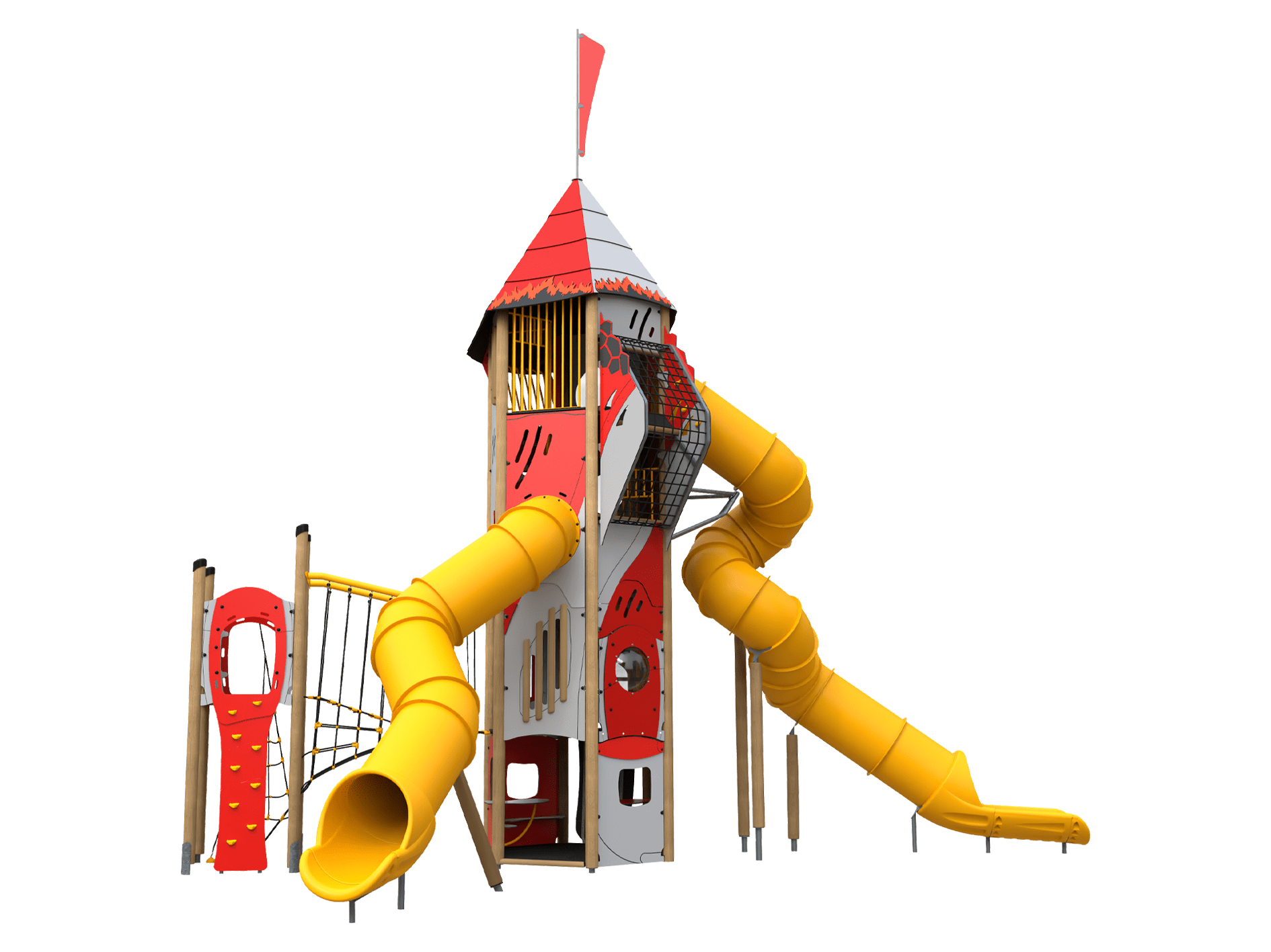 This fire training tower-themed Everest Plus is specifically designed for larger projects and high-activity areas. This themed Everest Plus will take your playground to staggering new heights.