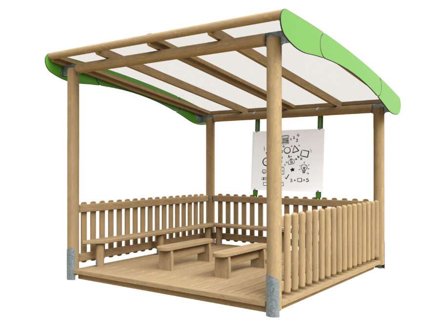 Create an attractive area for teaching outdoors. Can also be used by children during break time and provides shelter for parents when collecting children from school.
