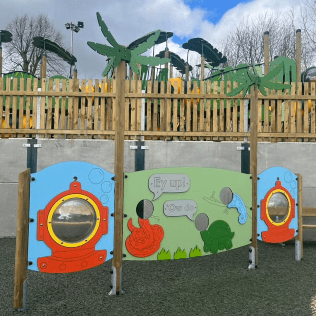 This reptile-themed Play Panel offers great imaginative and role play opportunities for children aged 18 months and over. It makes a great addition to any jungle or woodland-themed playground. Personalisation is available at an extra cost.