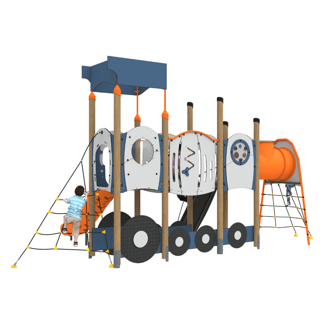 All aboard for adventure! This train-themed multi-play unit takes children on an exciting journey of active play and imagination. With a driver cab to climb, crawl, and explore, it encourages physical activity, social interaction, and endless train-themed fun!